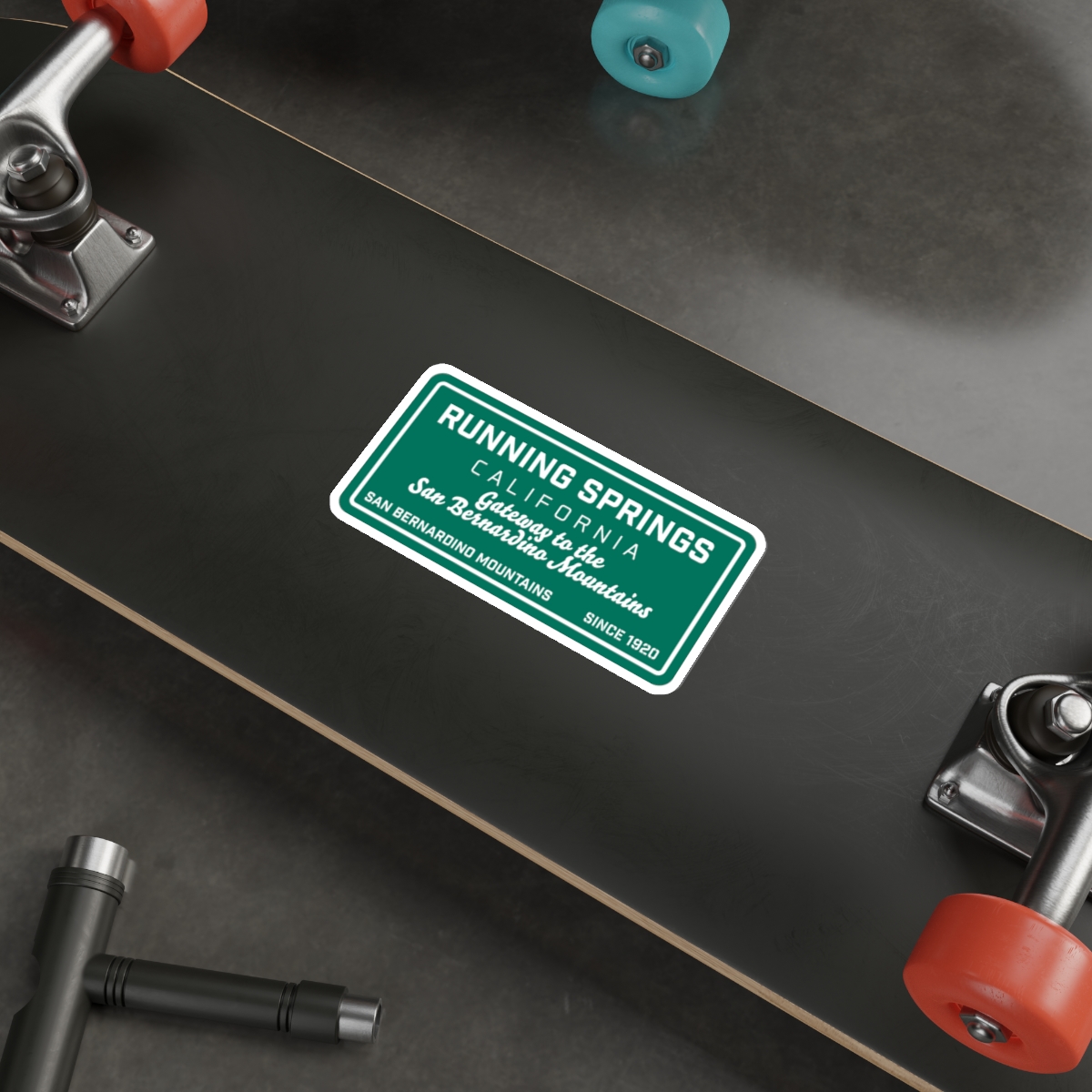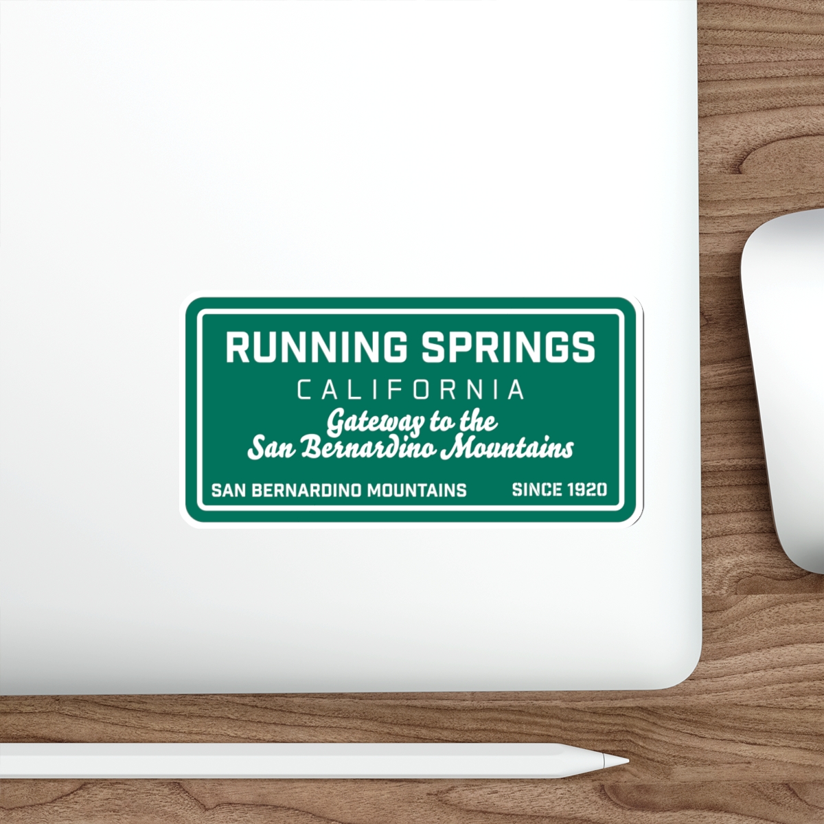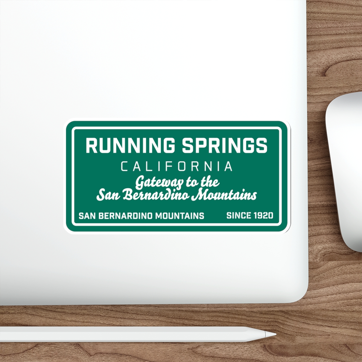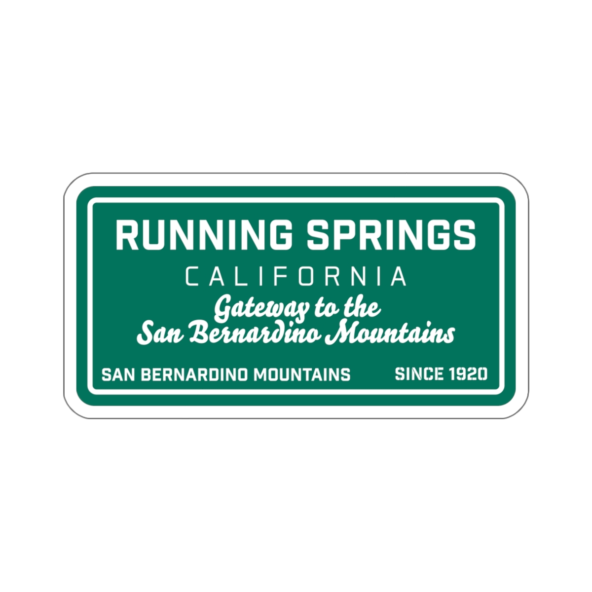 Our Running Springs Die Cut Sticker with our Gateway to the Mountains Road Sign Design is a great way to show your love of Running Springs, Ca. Our decals are very durable in both indoor and outdoor use as they are made with thick, waterproof vinyl sticker material. The easy-peel backing makes it easy to remove from the sticker. So take Running Springs on the road with custom stickers and decals by Bombswag™ – your online gift shop with local gear and souvenirs.